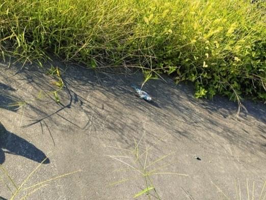 上内間木の新盛橋東交差点近くの桜の木をねぐらにして、工事予定地のフェンスにとまったり、交差点の電線にとまったり、歩道に降りて草の実をついばんだりしておりましたが、2022年9月11日(日)に餌場にしていた草地の草刈りがあった影響なのか、2022年9月12日(月)の16時頃の目撃情報を最後に消息が不明になりました。