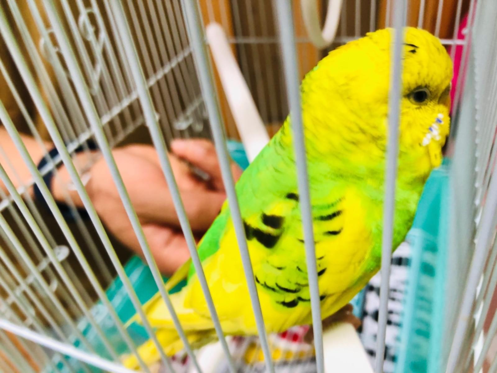 霧島市国分広瀬にて、迷いセキセイインコを保護しました。