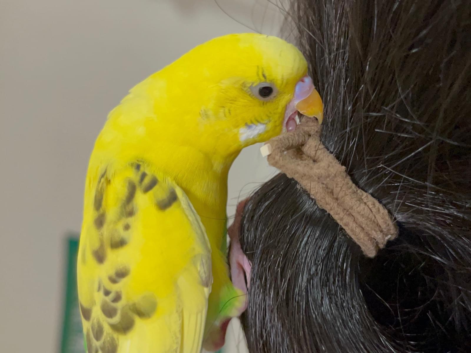 黄色いセキセイインコが迷子になりました。浜松市です。名前はキキ。頭に乗ったり肩に乗ったりします。