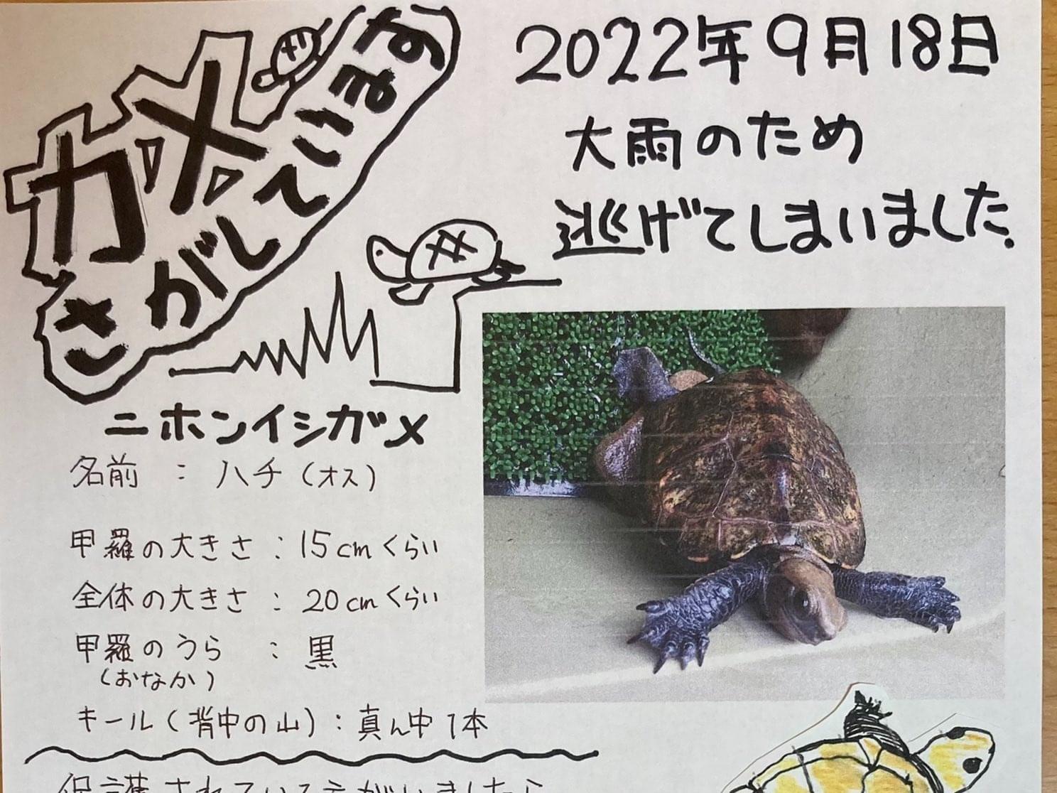 大雨で逃げてしまった【ニホンイシガメ】を探しています。