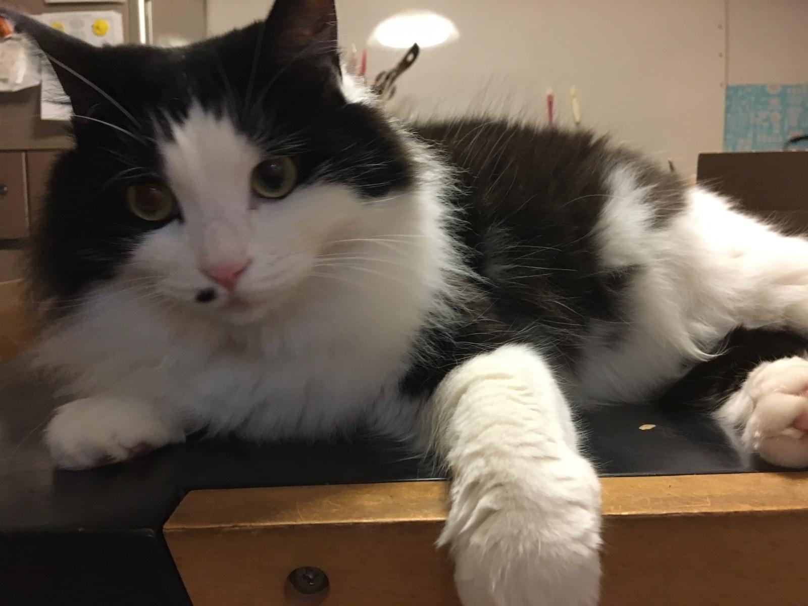 黒白ハチワレ 鼻横にホクロ