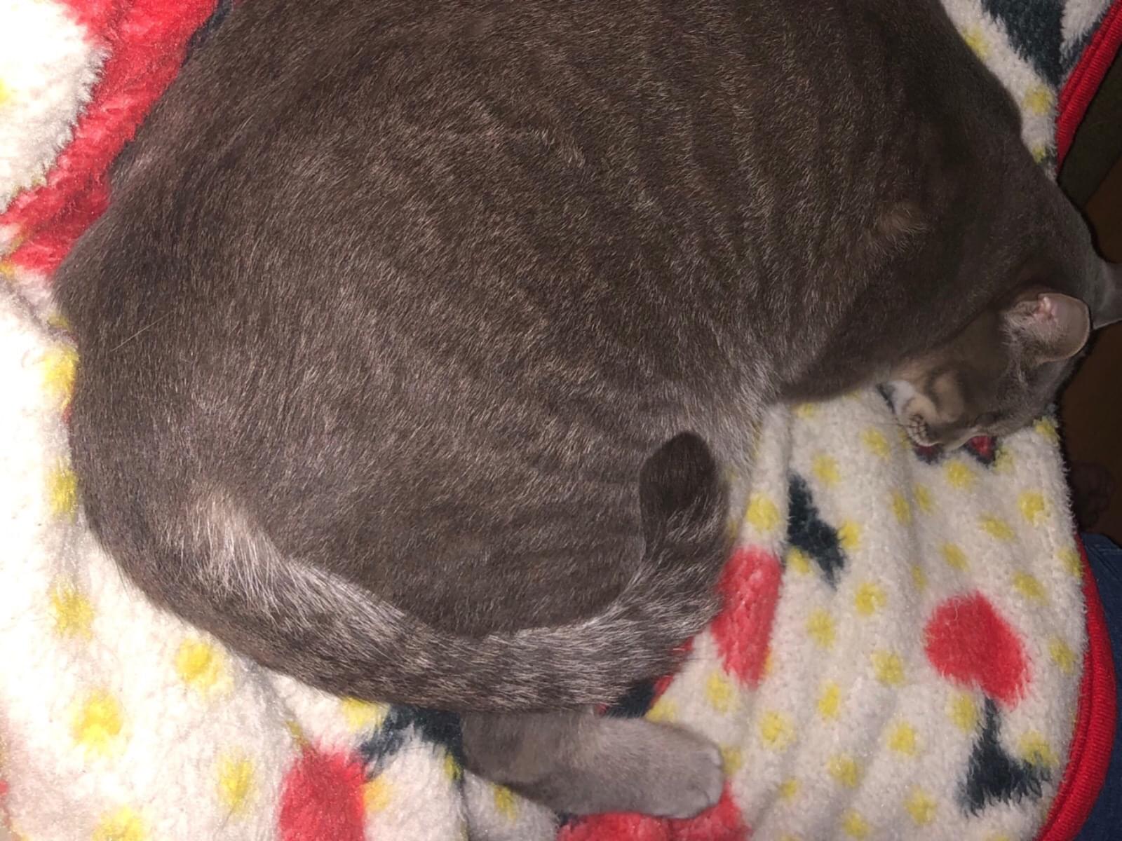 尻尾は黒と灰色のしましま模様