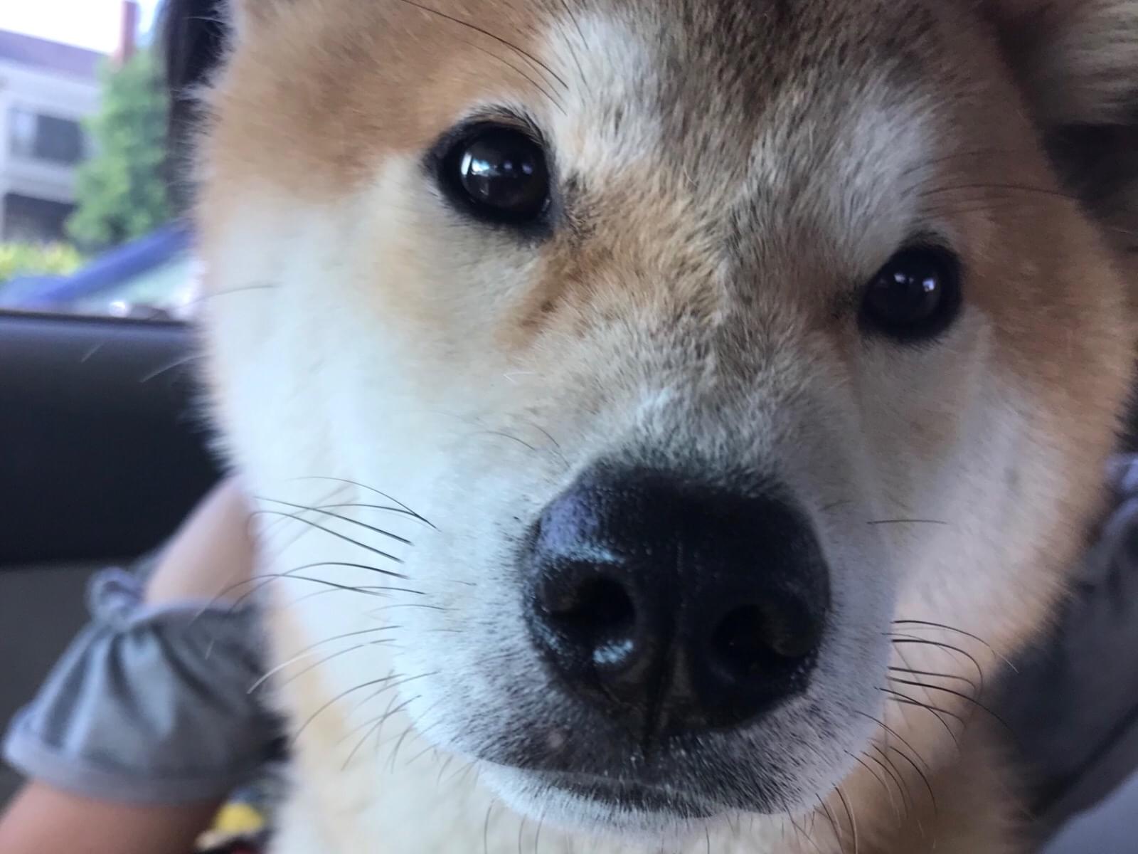 毛の色は薄い茶色で顔やお腹、前足は白っぽく、目の色は黒です。