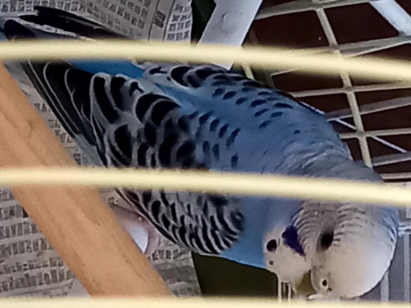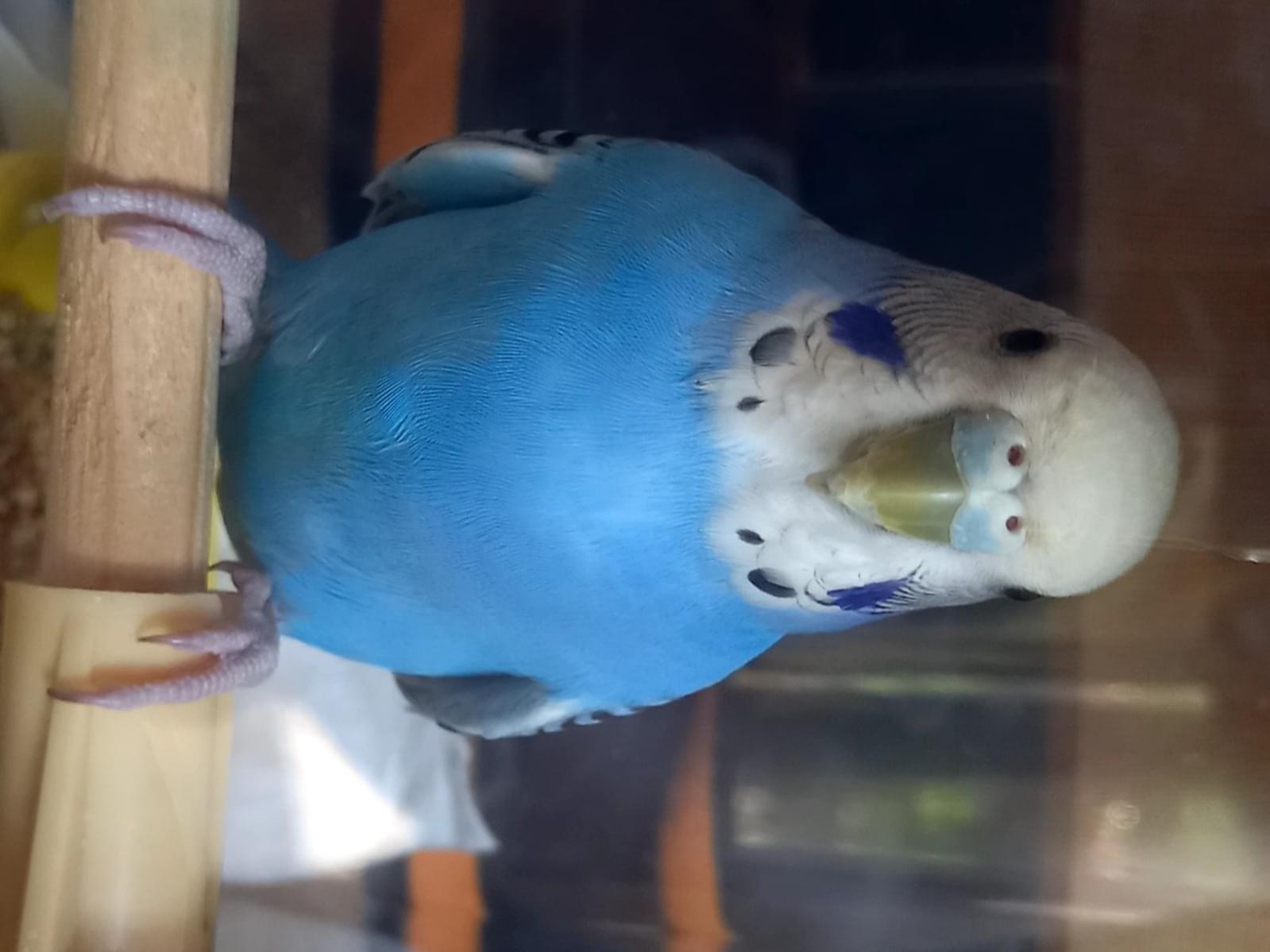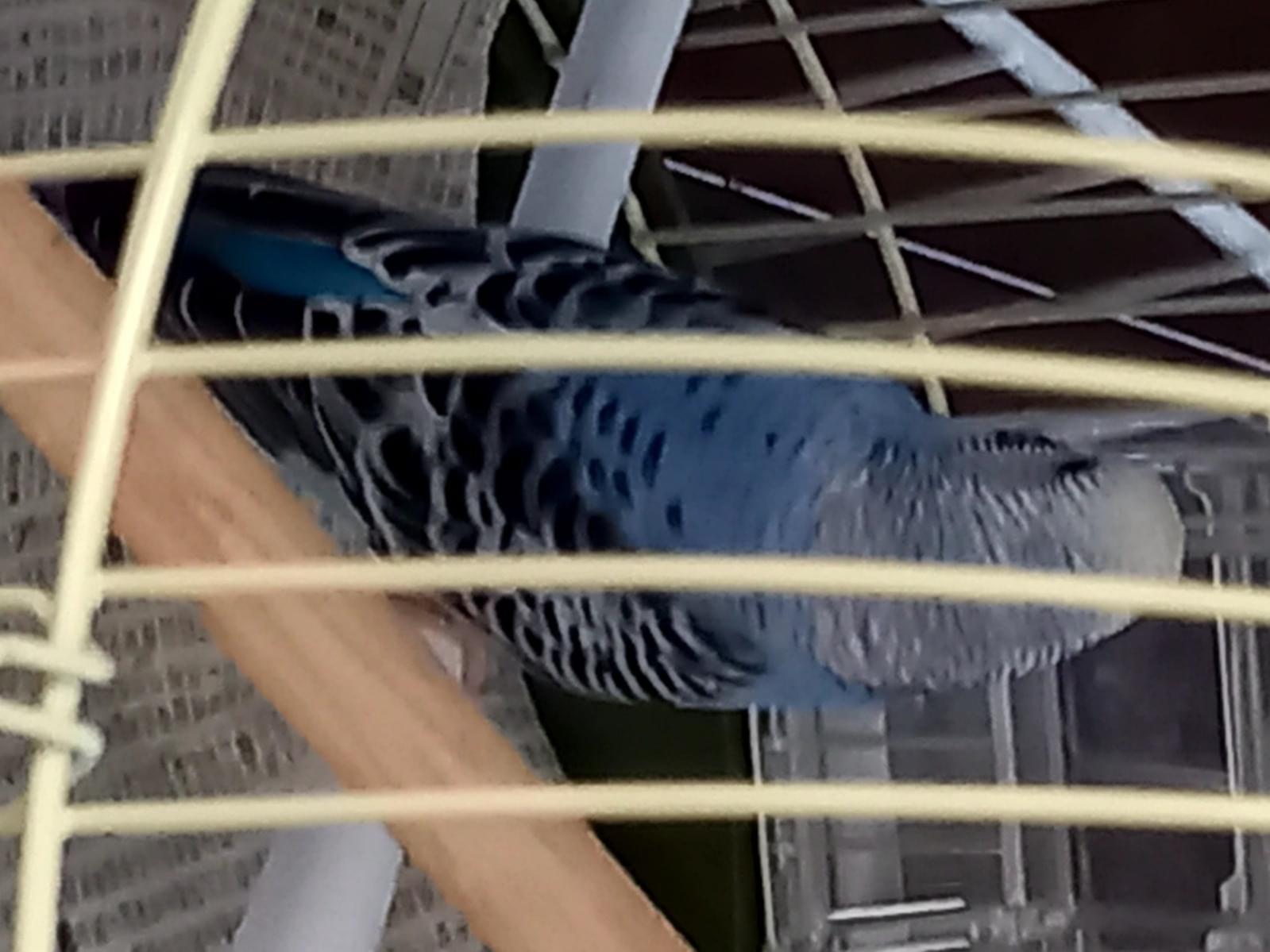 水色で羽は黒と水色のセキセイインコを淀川河川敷で保護しました