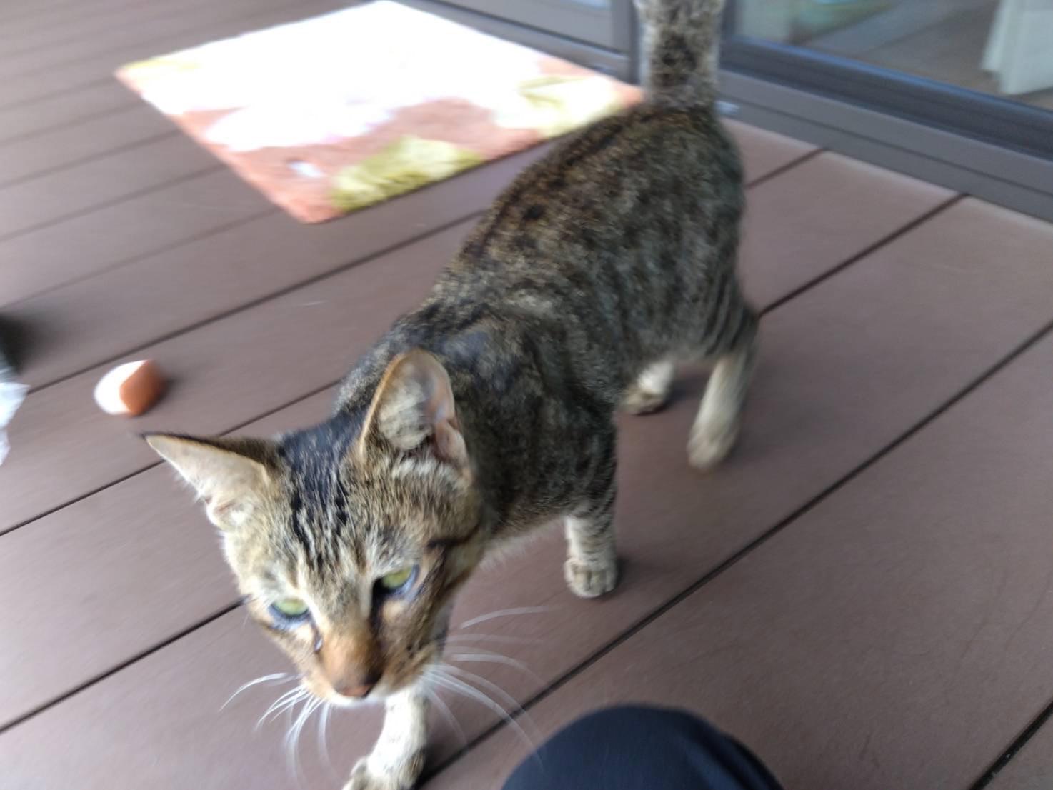 代理投稿です。知り合いの家にキジトラのオスが迷い込んできました。とても人懐こく
