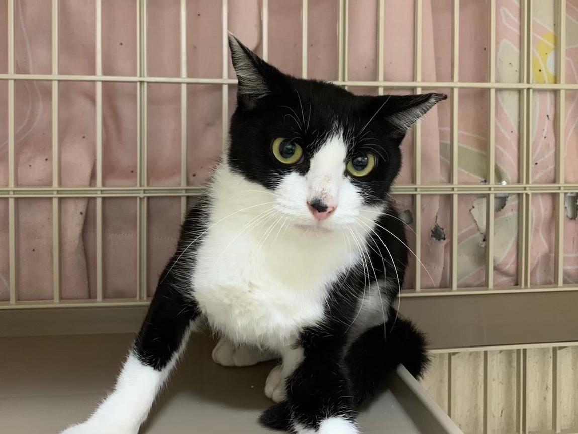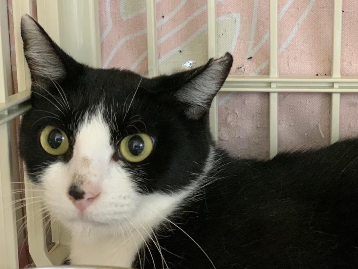 特徴は、小柄、黒白、ハチワレ、左耳にカットあり、長い尻尾、人馴れしていない(脱走当時なので、今は変化しているかもしれません)