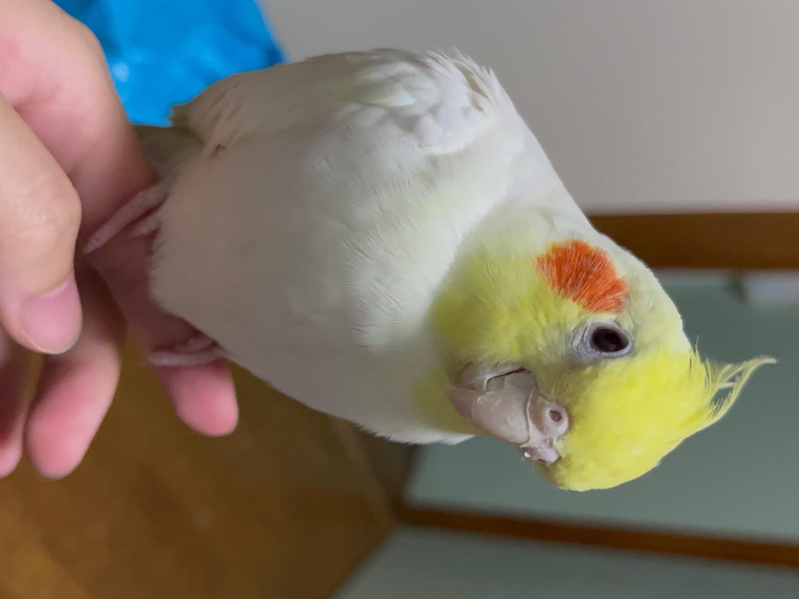 オカメインコのルチノーで頭のお禿げが全然ありません。