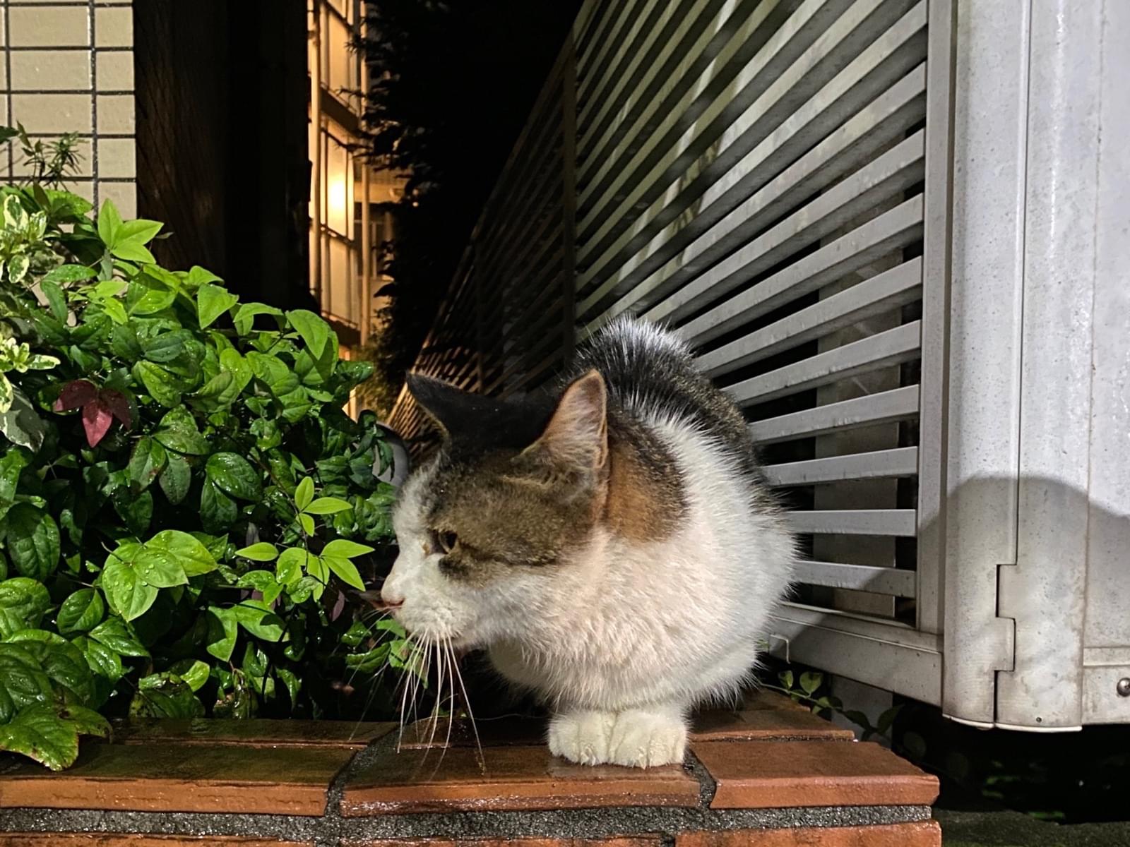 雨の日だったため見間違いあるとは思いますが、耳カットありの毛並みの艶やかな猫ちゃんでした。