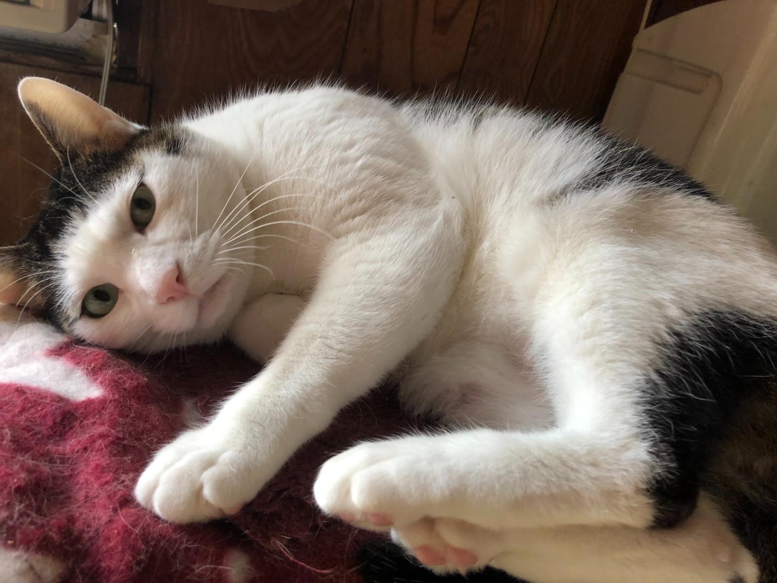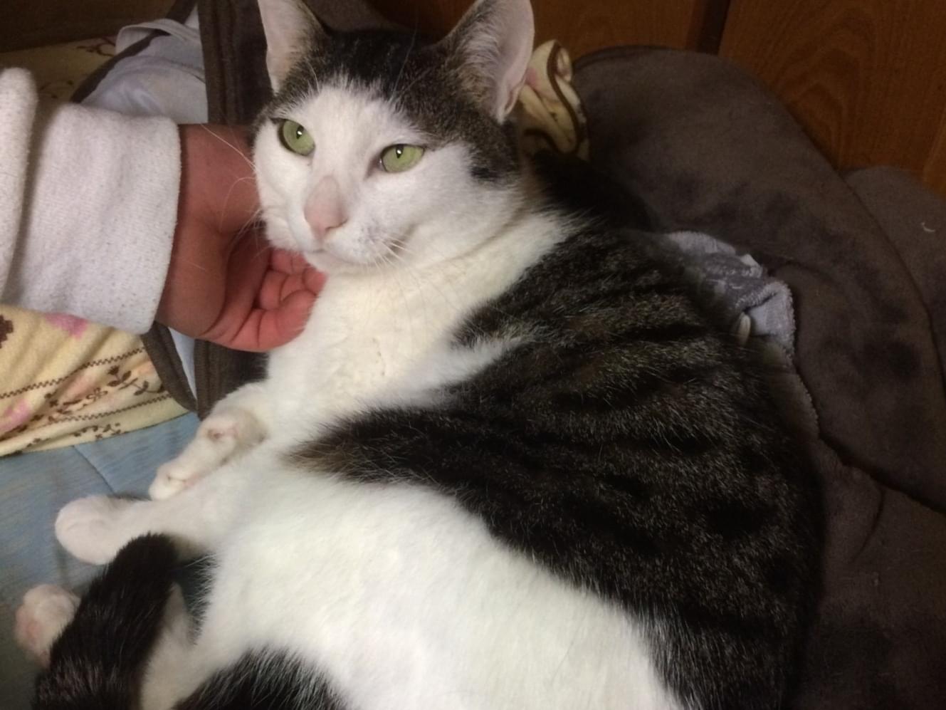 顔の模様が前髪ぱっつんでとても特徴的です。男の子、10歳です。去勢済み。マイクロチップなし。