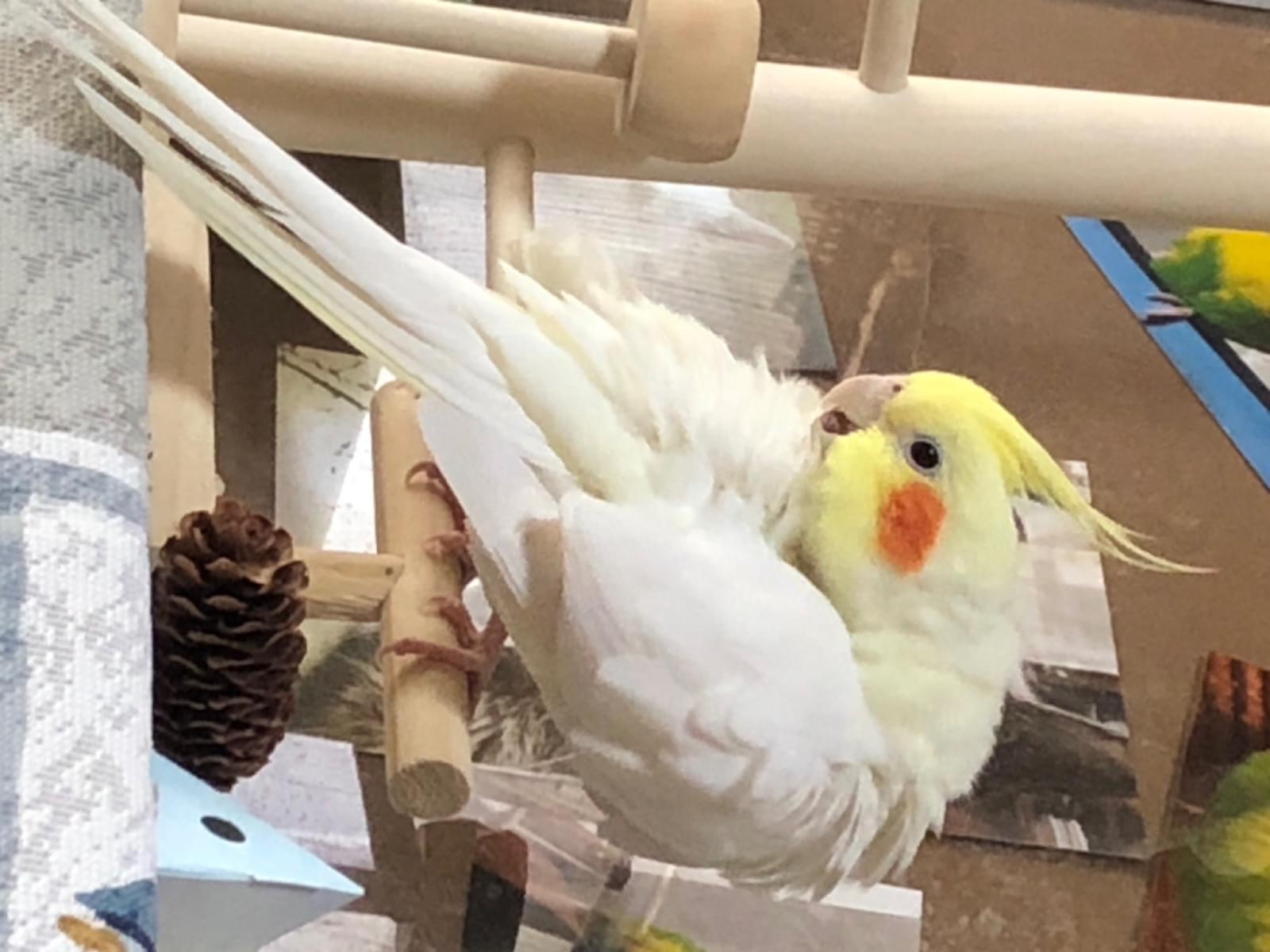 画像の輪ゴムですが本人(本鳥?)が自らつけたもので、虐待では有りません。