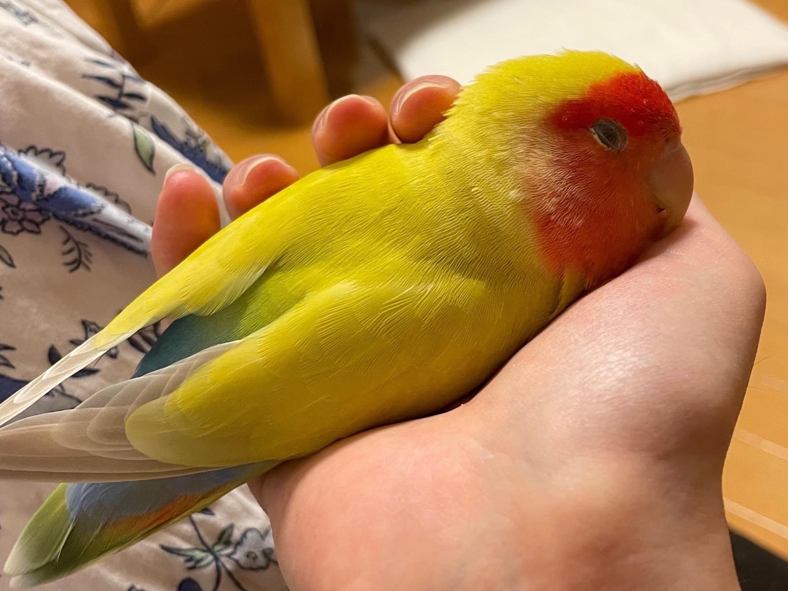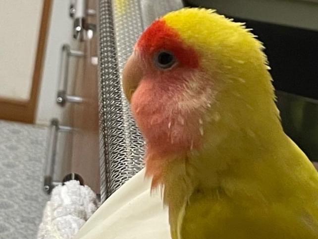 黄色いコザクラインコ(頭はオレンジ)を探しています
