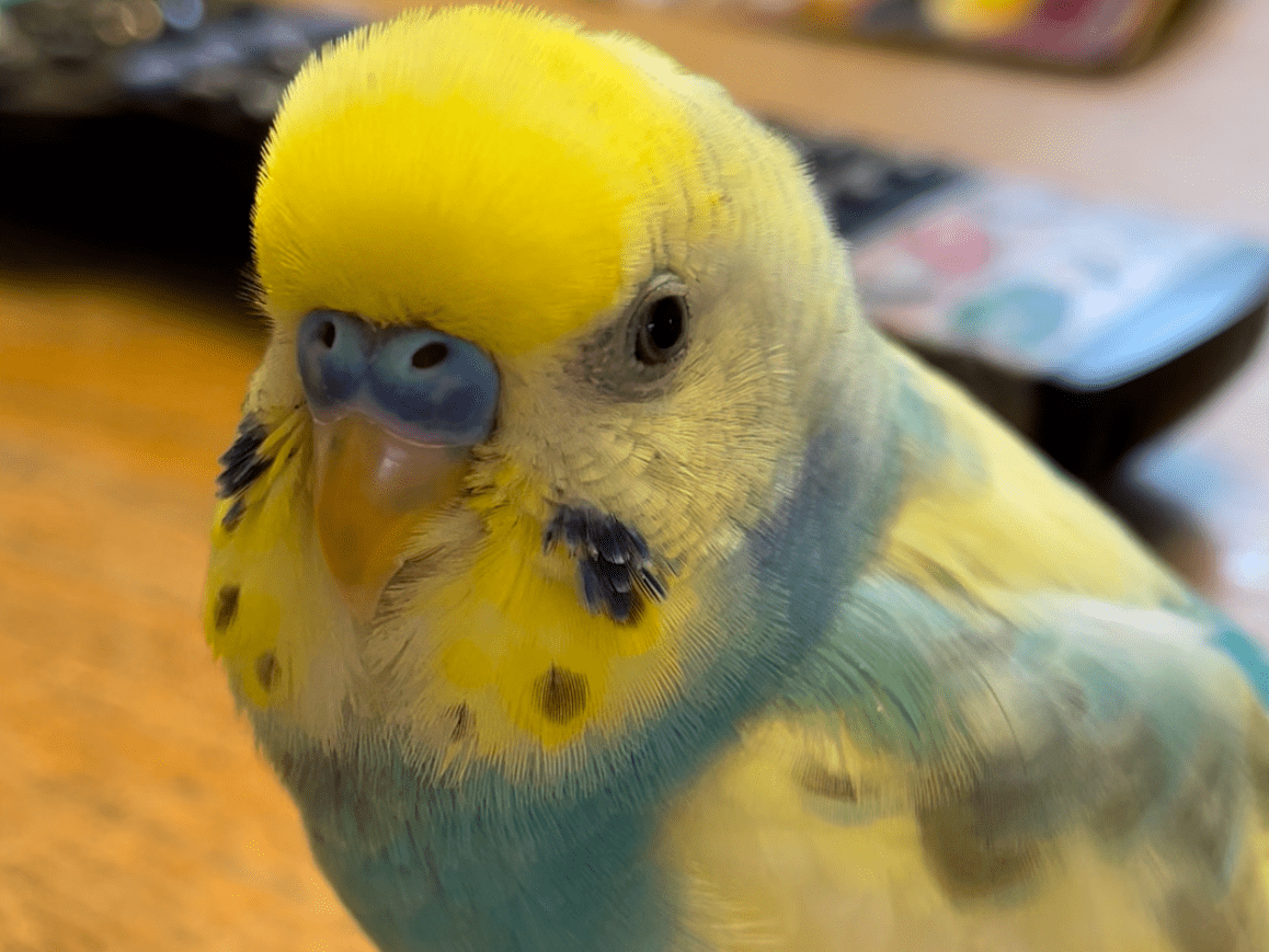 左目が少し大きくて、キョロちゃん、可愛い、きょーちゃんと鳴き、手や方に乗ってくれます。