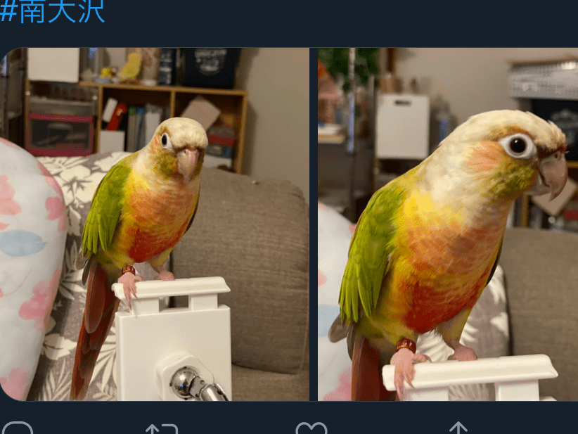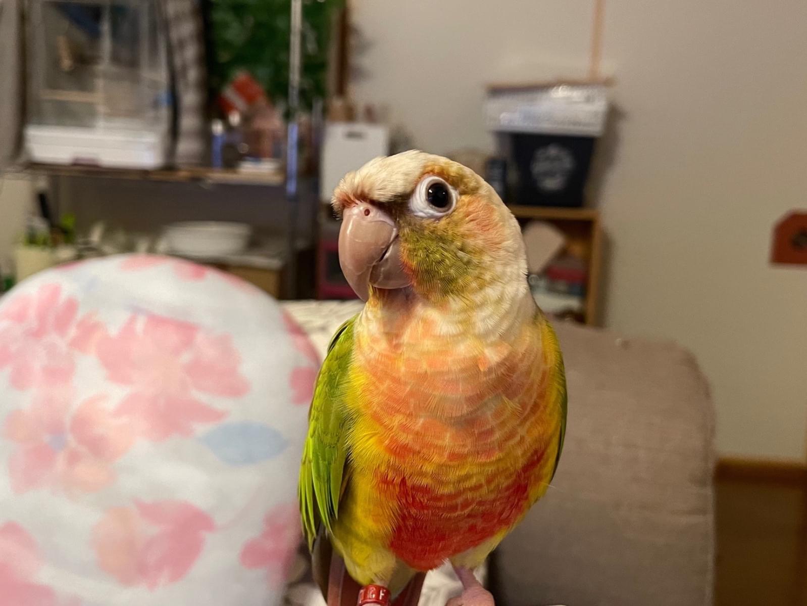 朝はおはようと何度も喋ります。自分をパーちゃんパーちゃんと呼びます。