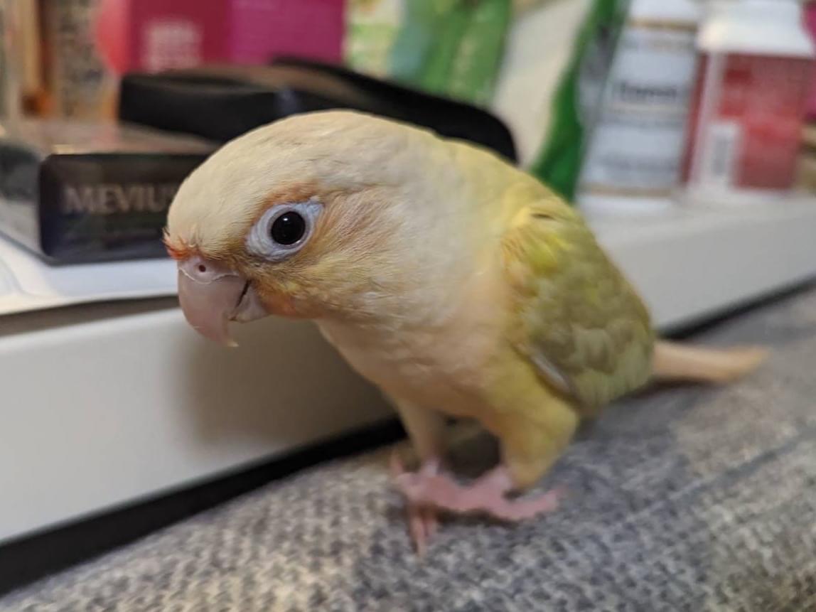ムーンチークという色(頭がクリーム色で体は黄緑色、アイシャドウや肩のあたりがオレンジ色)のウロコインコを探しています。