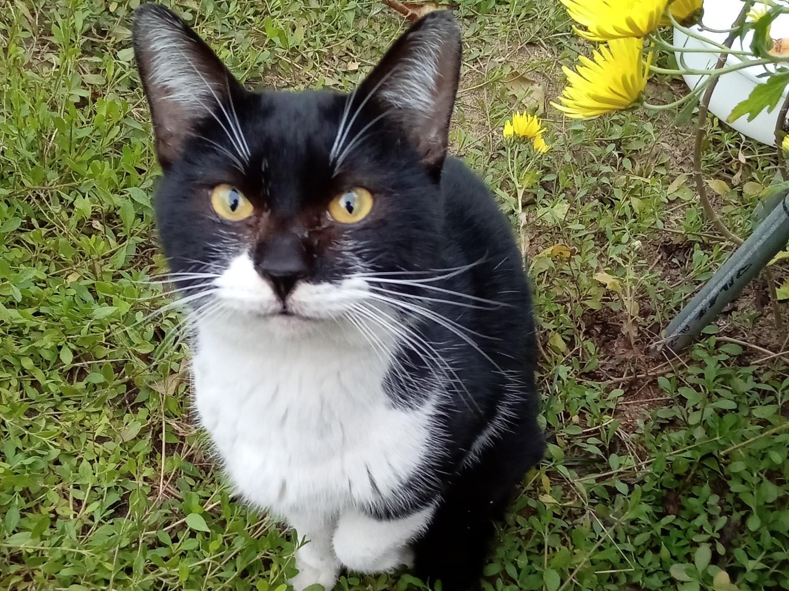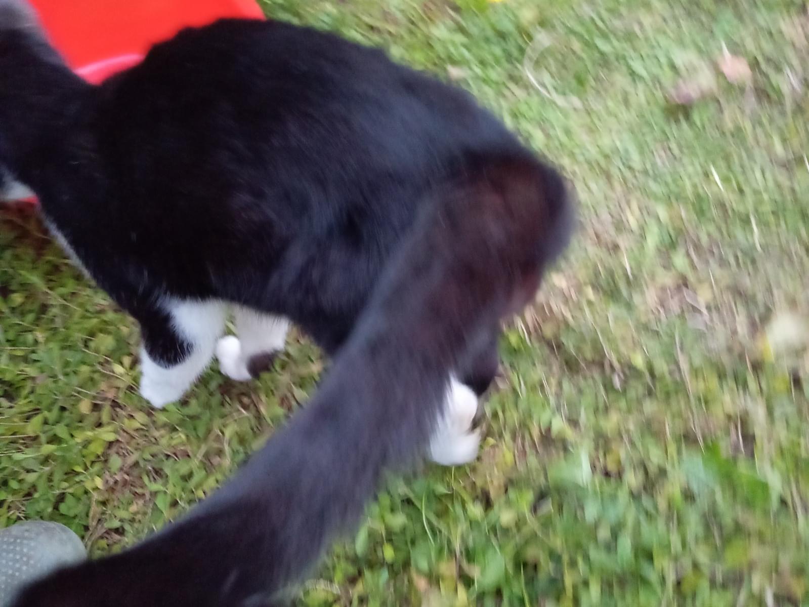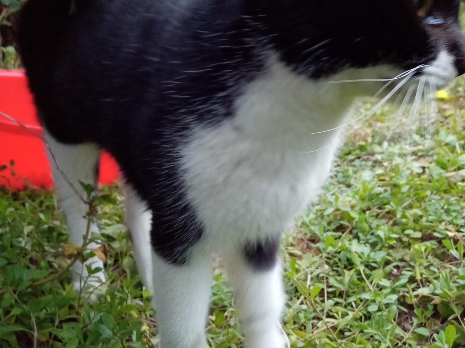 尻尾の長い大人サイズの白黒オスで、歯石なさそうに見え毛の艶も若そうです。