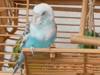 東京都目黒区碑文谷公園近くで白と青と黒のセキセイインコが迷い鳥になっています。