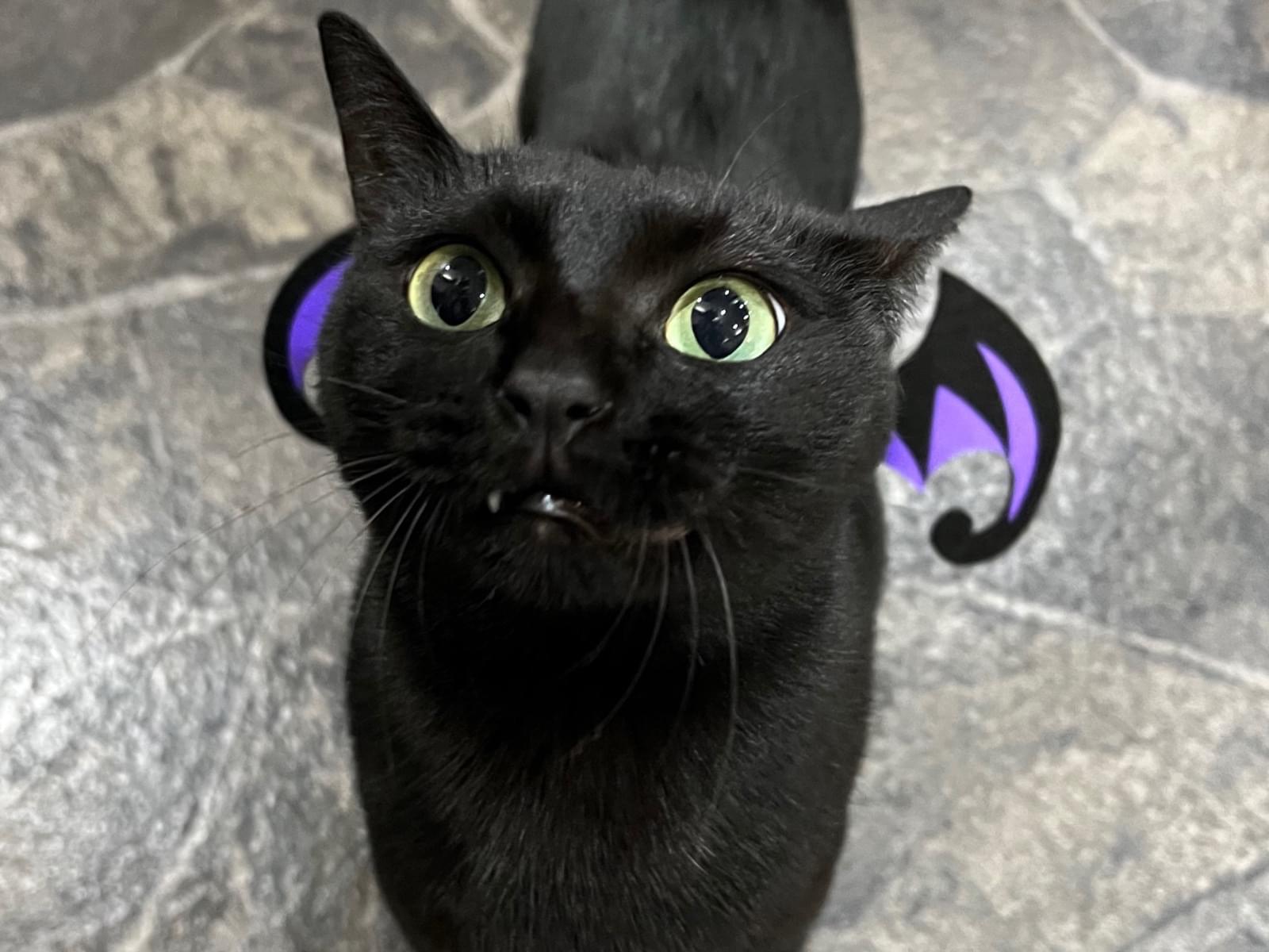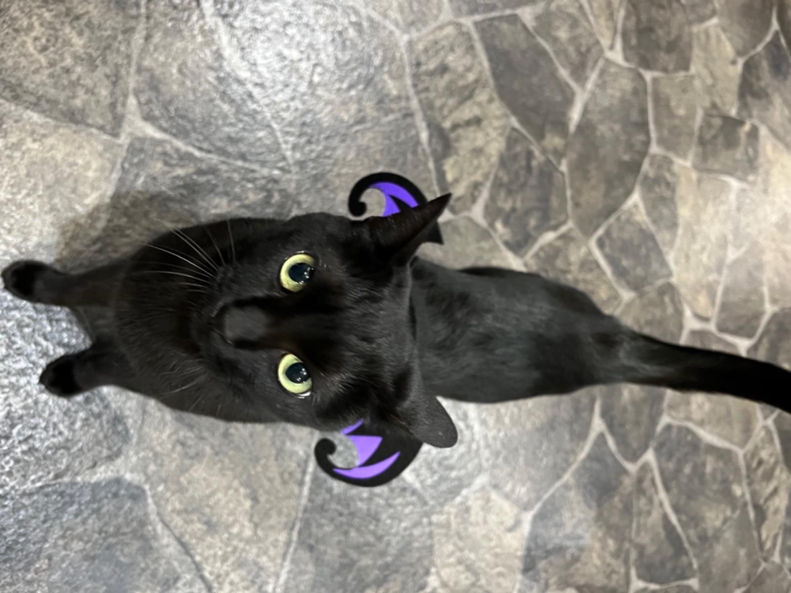 お腹に1箇所白い毛が生えている黒猫を探しています