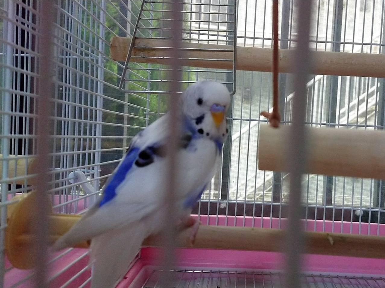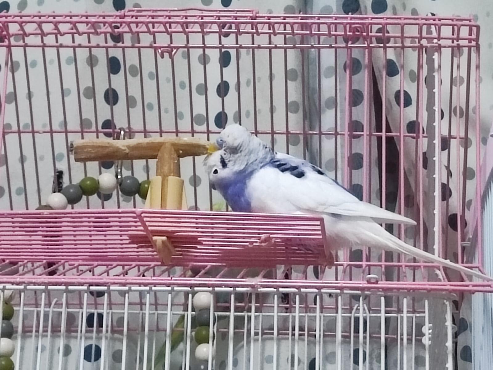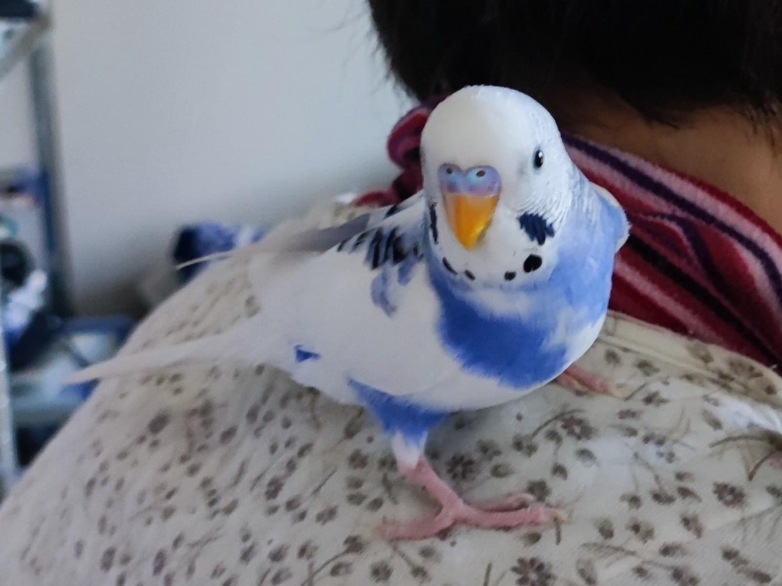 白と青のセキセイインコのオス、おこめちゃんをさがしてます。