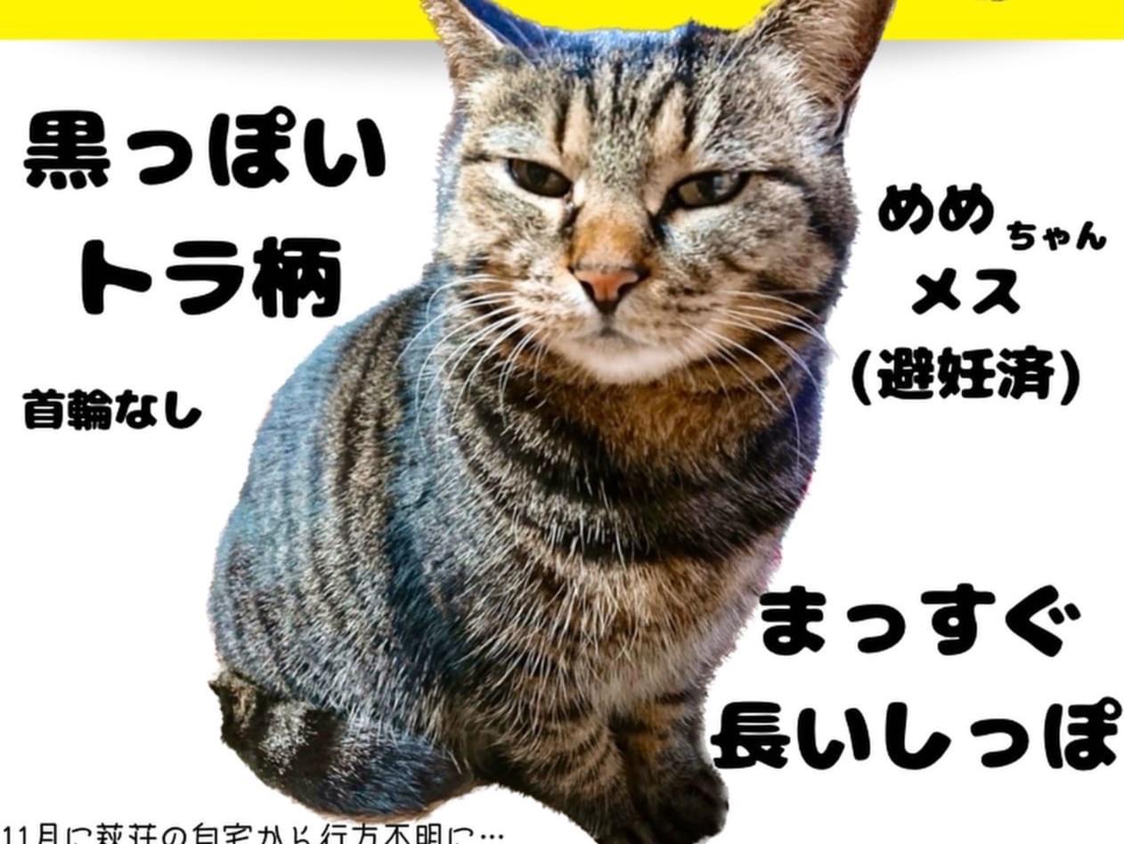 似た猫を見かけた、ご飯をあげている猫に似ている、野良猫に餌やりしてる人を知っているなどご連絡お願いいたします。