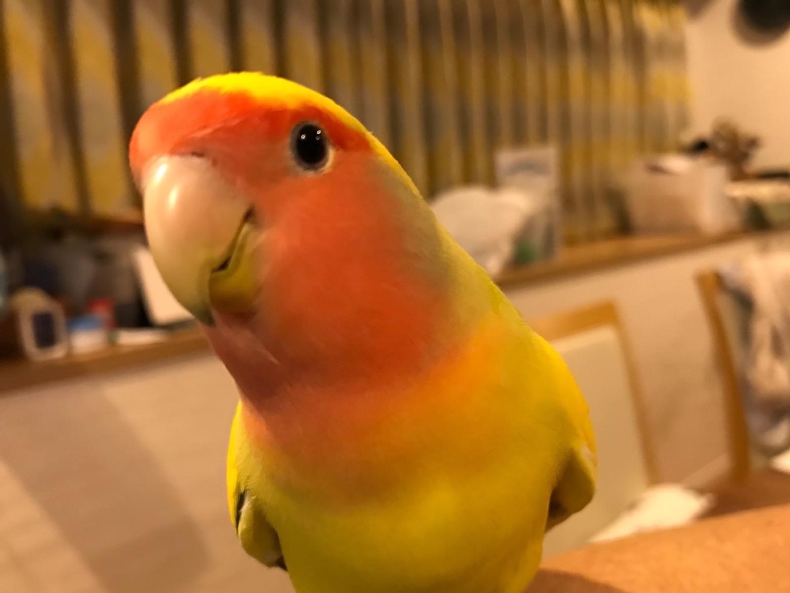 人なつこく肩にのります。名前を呼ぶと鳴き返します。