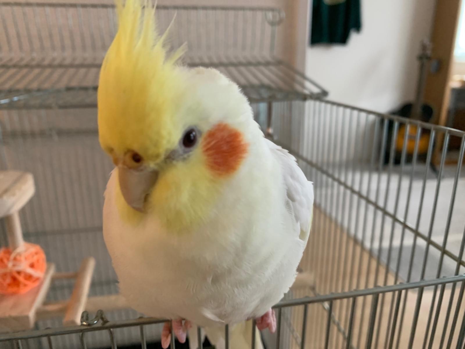 ルチノーのオカメインコです。ハゲありです。背中も一部毛がないです。「もじゃ」と自分の名前や「かわいい」としゃべります。目撃情報、保護された方いらっしゃいましたらご一報ください。