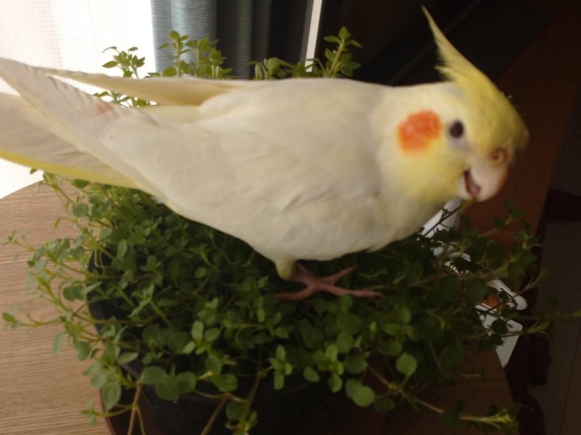 いろはクリーム色。ほほがオレンジ色です。手乗りなので慣れています。