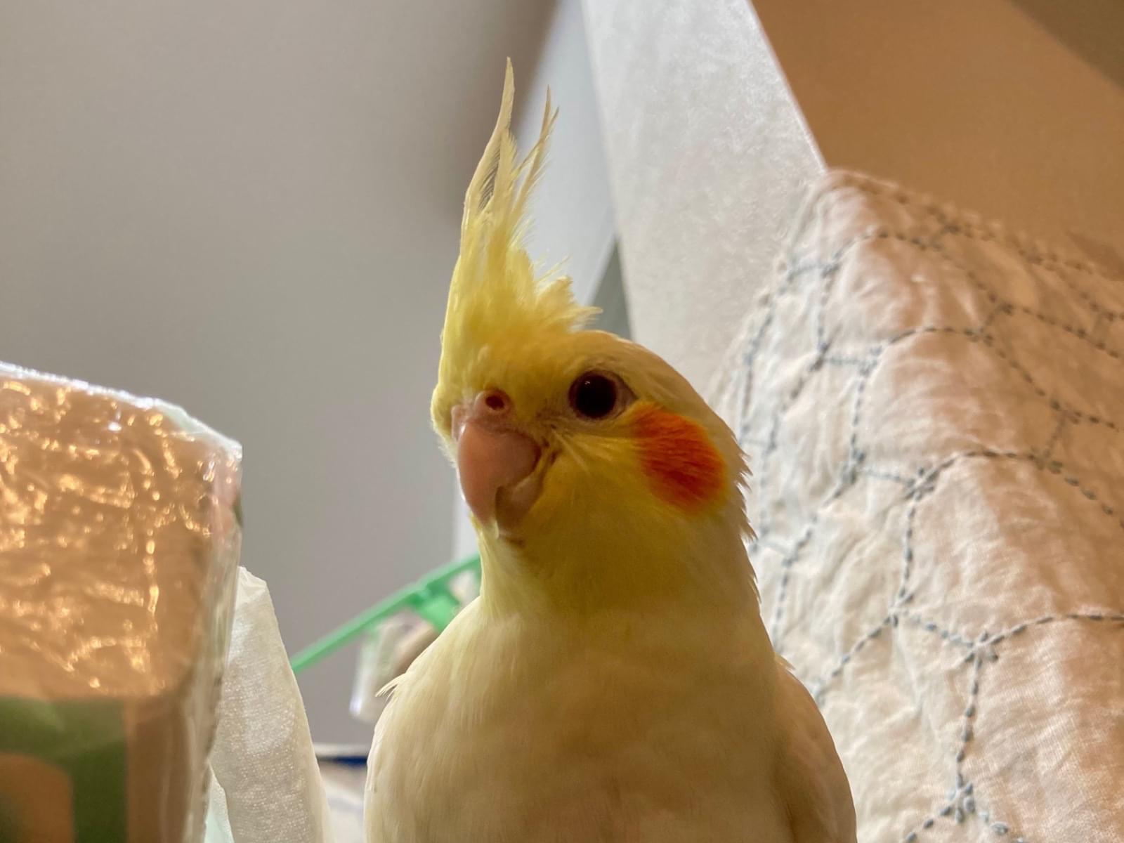 人懐こくてとてもかわいいオカメインコです。オカちゃんと呼ぶと、ホェーと返事をしてくれます。眠い時は、くちばしを擦り合わせてギジギジと音をたてます。ひまわりの種や豆苗が大好物です。見つかることを家族みんなが願っています。よろしくお願いします。