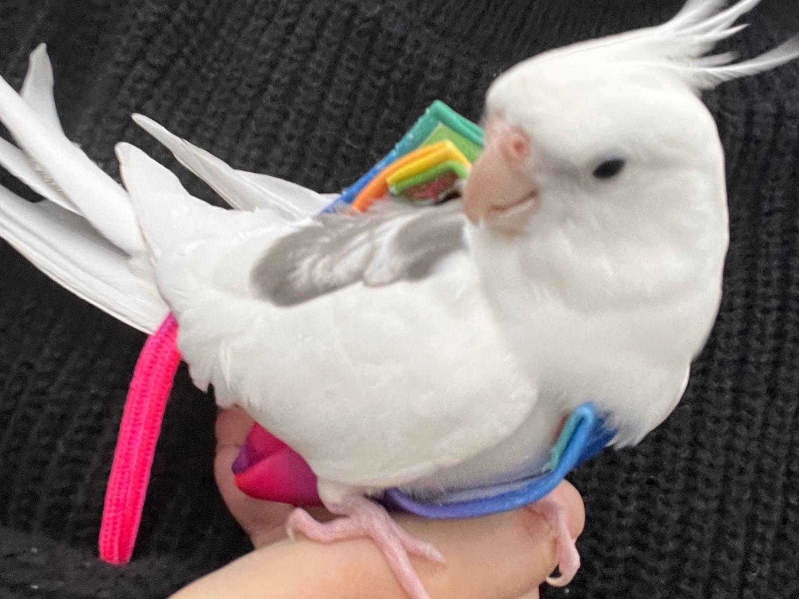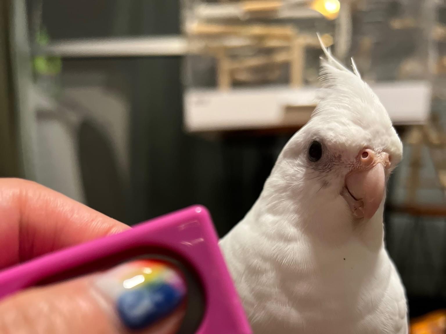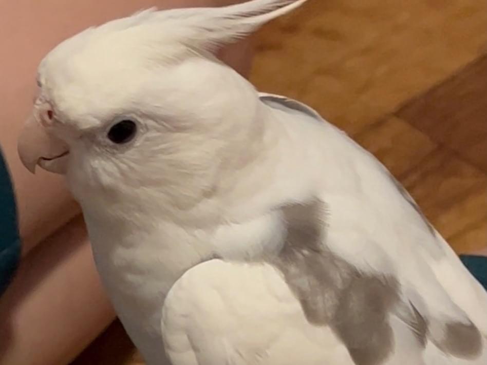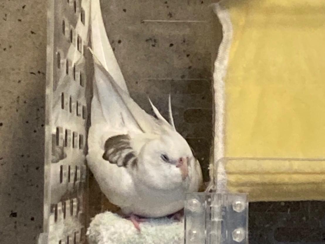 口元にホクロ模様がある白色にグレー模様のオカメインコが迷子になりました