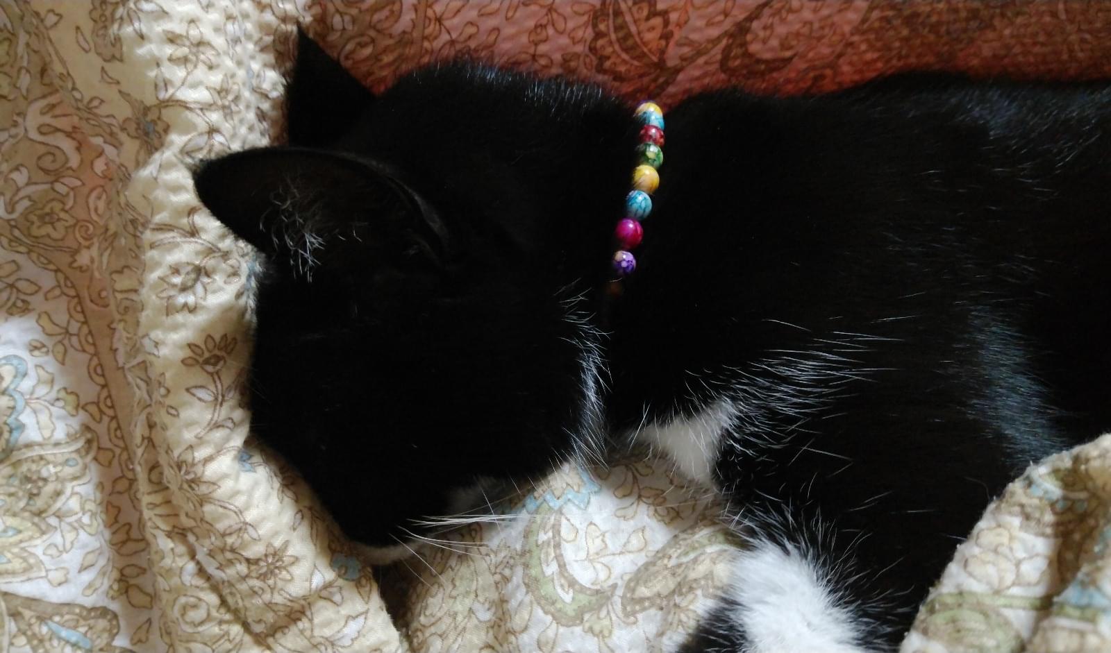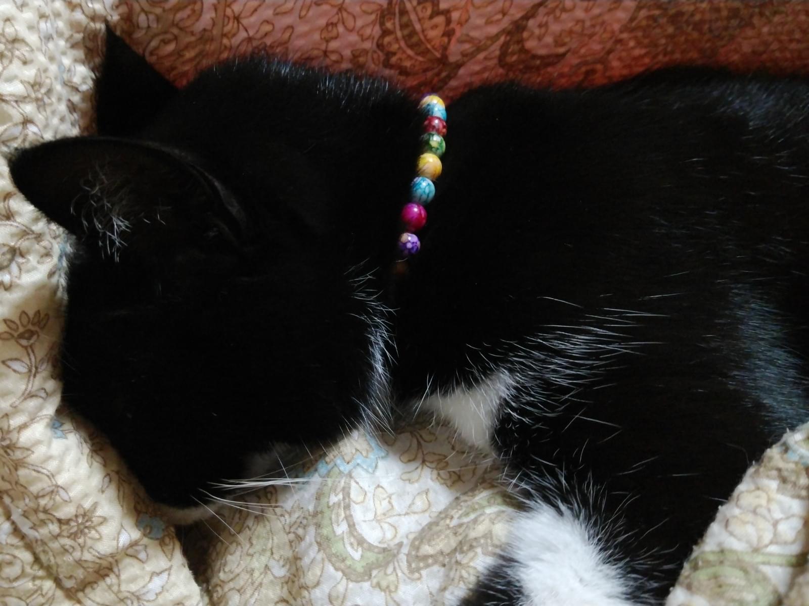 ☆首輪はカラフルなマーブル模様のビーズで作ったクッションワイヤー製でシルバーの大きめの鈴が付いています!