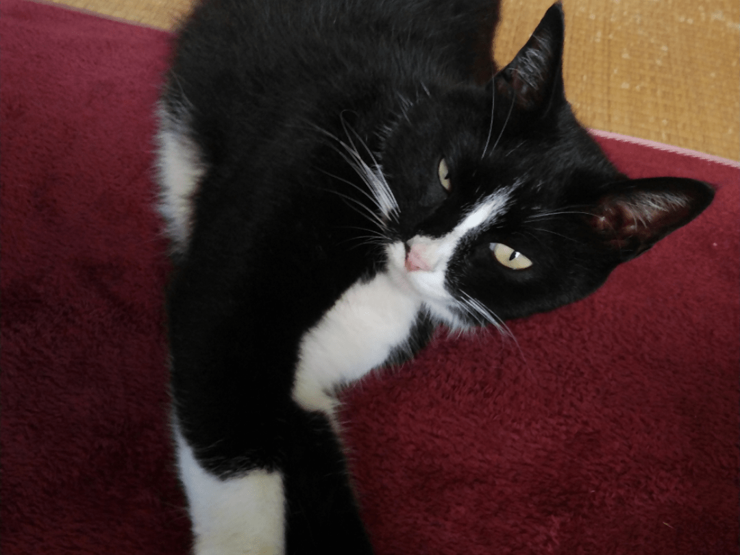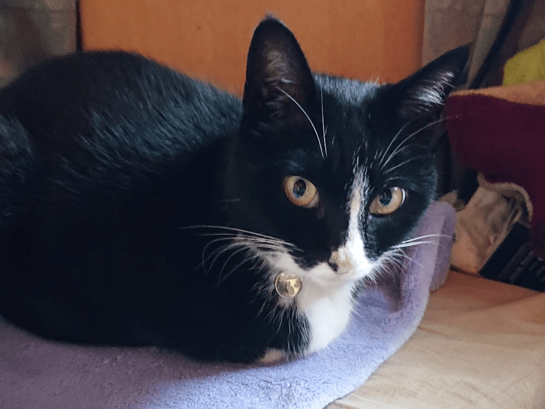 黒の割合が多い黒白ハチワレ猫を探しています!