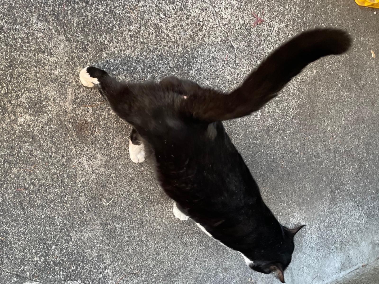 迷子?んー、最近うちによく現れるようになりました人馴れしていて毛も綺麗だし一応報告しまぁーす……首輪なし、オス猫、怪我なし
