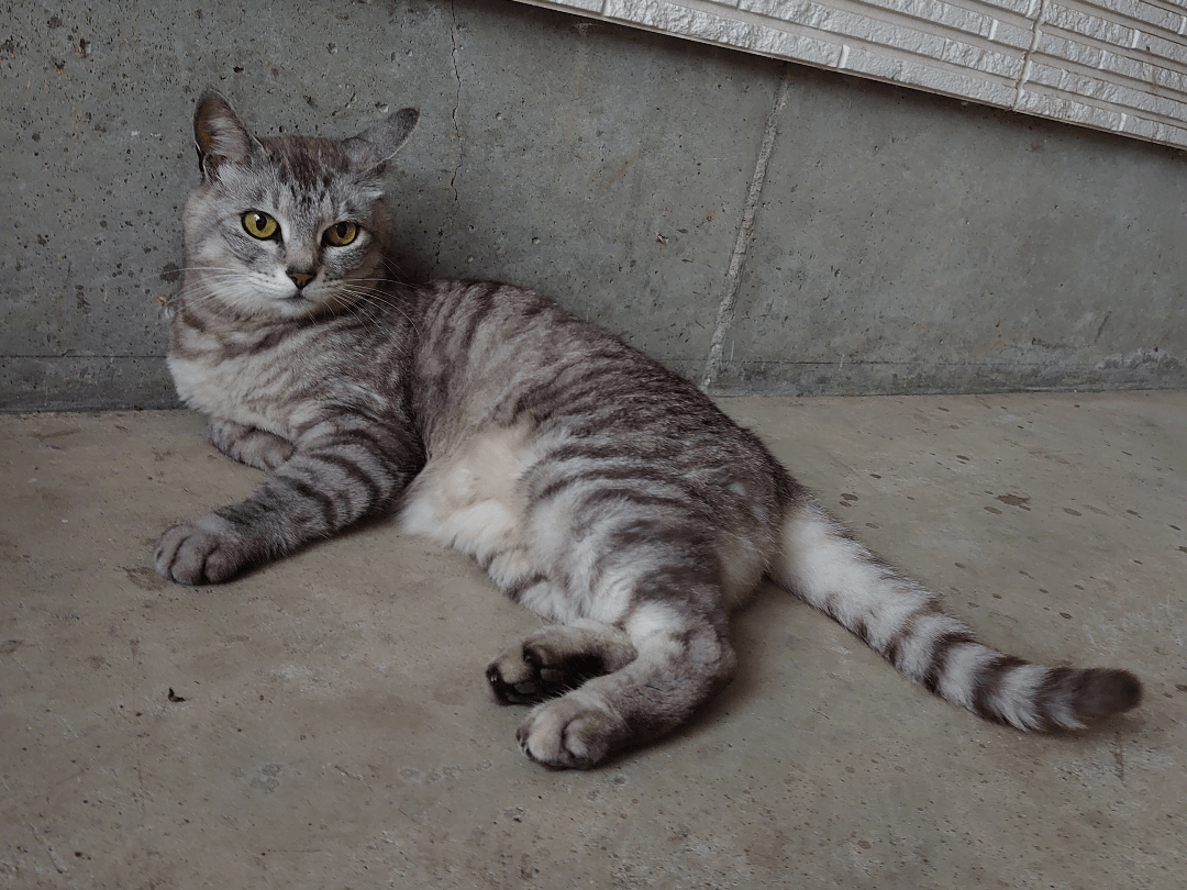 メスで避妊済み。しっぽは長い。首輪なしです。