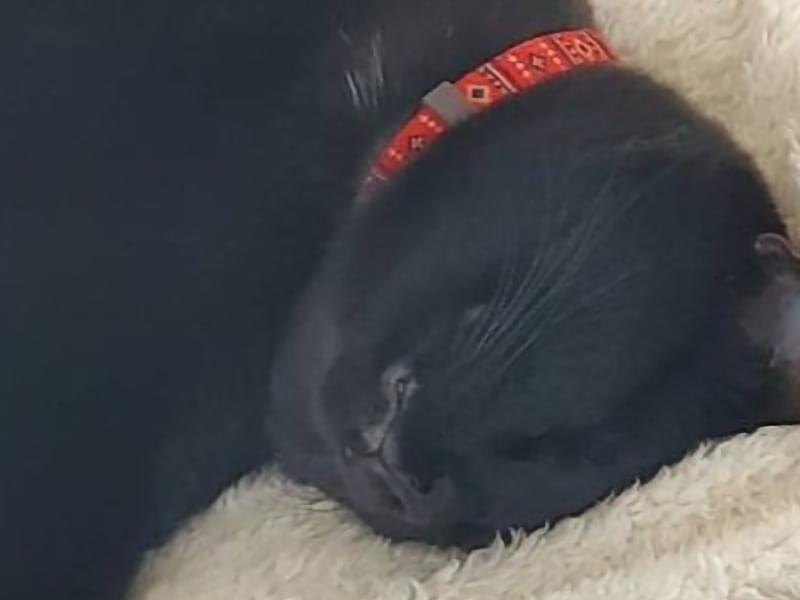 全身黒ですが、良く見ると胸の辺りに白い毛が数本あります。とても人見知りで家族以外は触れません。