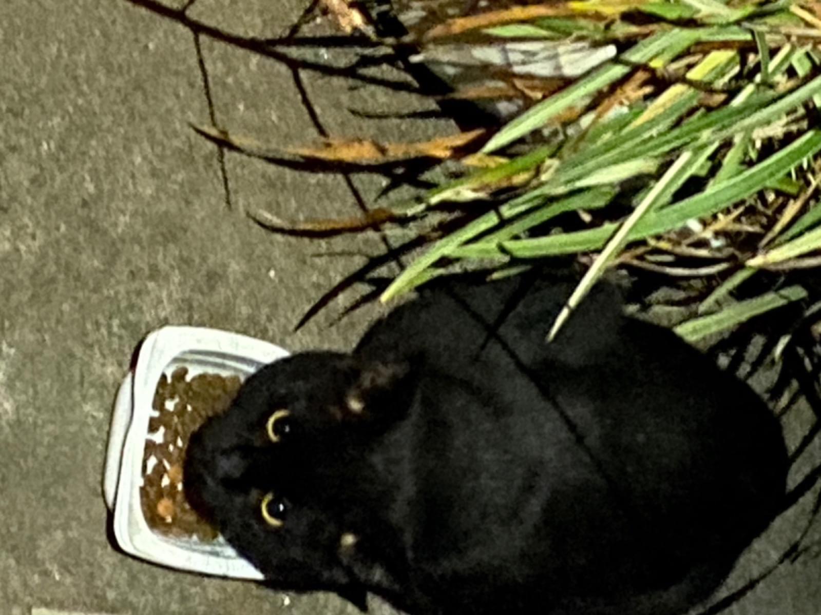 近所のいくつかのおうちでご飯をもらっているようです。近くで確認して、おそらくオスで未去勢です。野良なのか元飼い猫なのか?比較的人間に慣れています。野良猫ならば去勢手術をしてさくら猫にしたいと考えています。飼い主さんがいるかどうか、確認したいです。