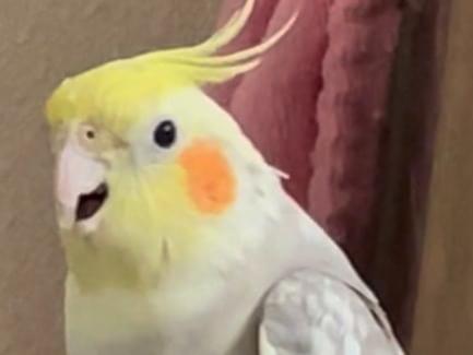 よくしゃべります、手乗りで頭や肩などによくとまり、
