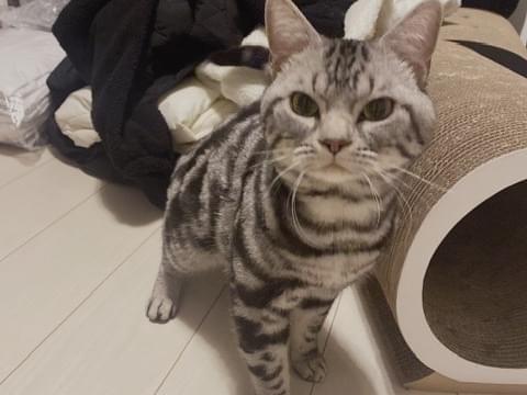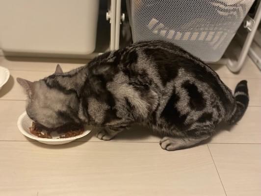 自宅前にいたので触ろうとしたら逃げず、膝に乗りチュールを食べたので、野良猫ではないと思い投稿します。