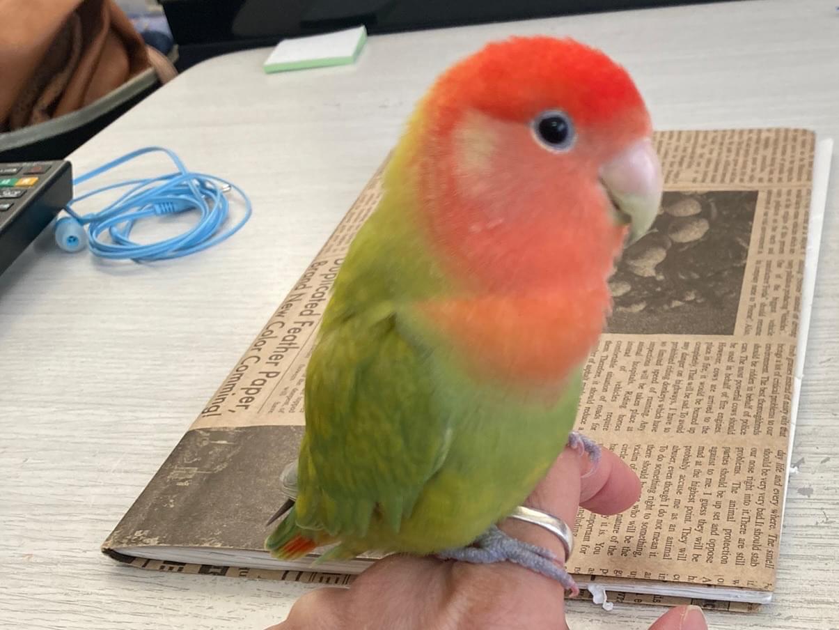 性格は穏やかで、人に慣れてます肩や腕が好きです。手は苦手な様です