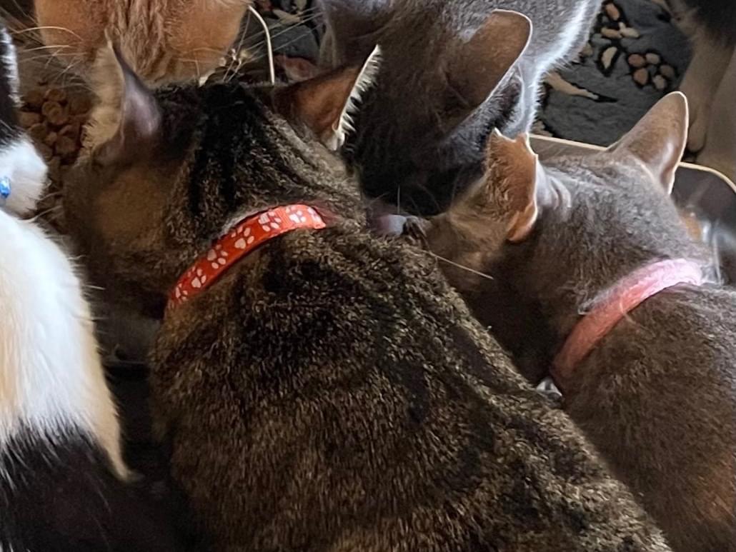 オレンジの首輪に鈴と迷子カプセル付きでしたが、取れてる可能性ありです。