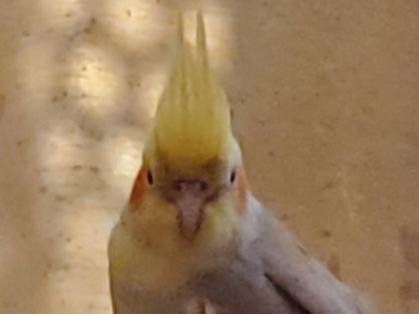 普段はさほど鳴かないのですがお腹がすいたり、機嫌が良いとぴっぴ〜鳴きます。稀に【モッチャン?】と言うように聞こえる鳴き方をします。1番長い尾っぽがほんの少しですが右に曲がってます。抜けてしまうとわかりません。元に戻って真っ直ぐになってるかもしれません。