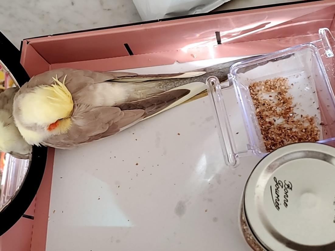 オカメインコを探してます(シナモンパイドという種類)1番長い尾っぽが右寄りに曲がりがあります。