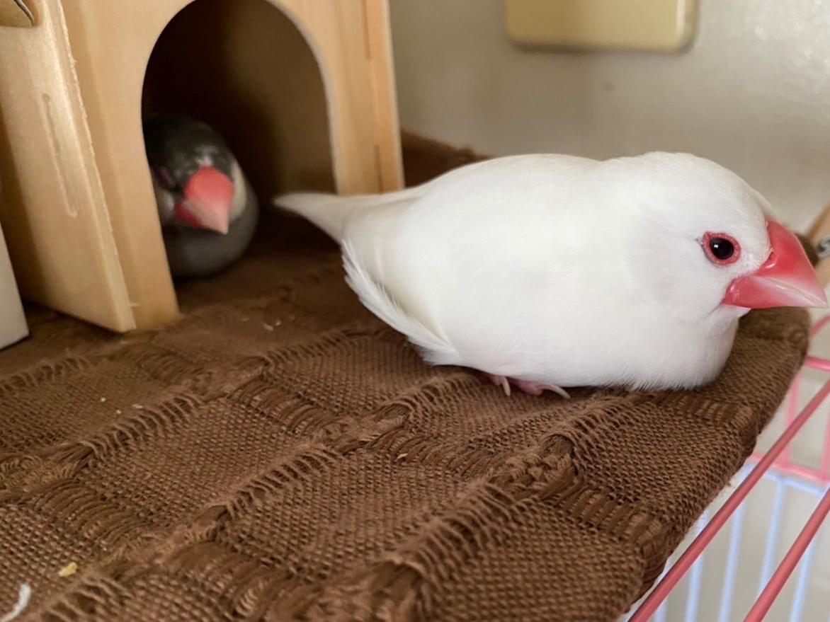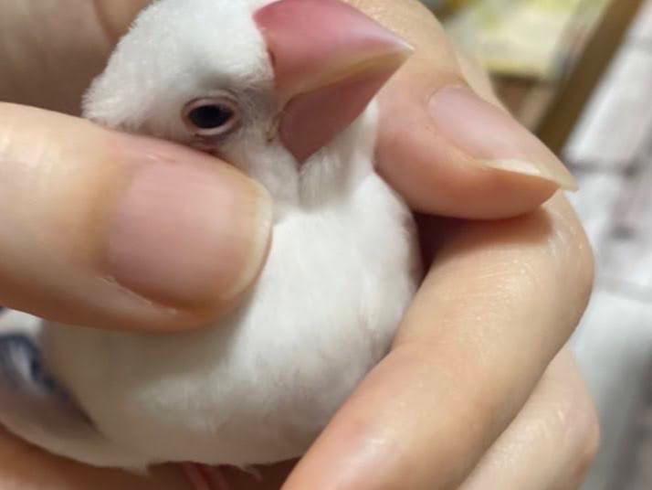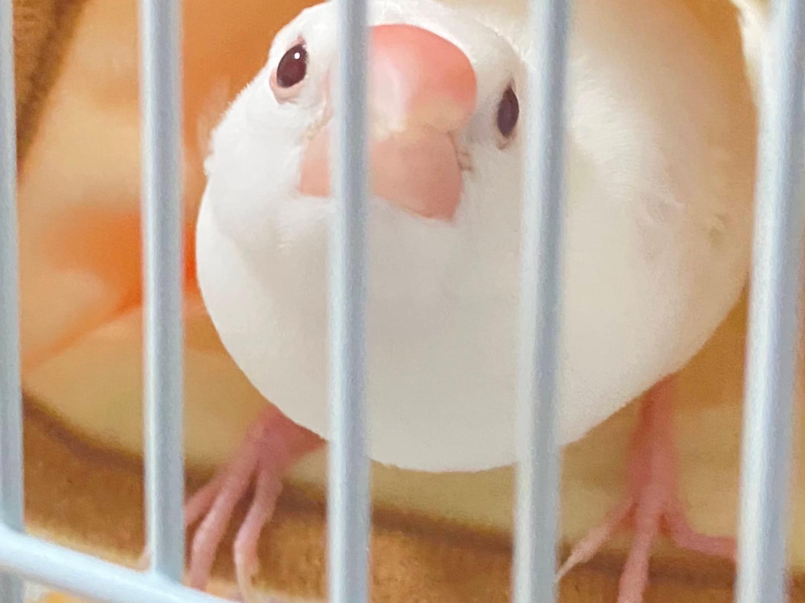 白文鳥で、生まれつき足の指が一つだけ折れています。ピチュンピチュンピュイイーンと高い声で鳴きます、性格は大人しい子です。