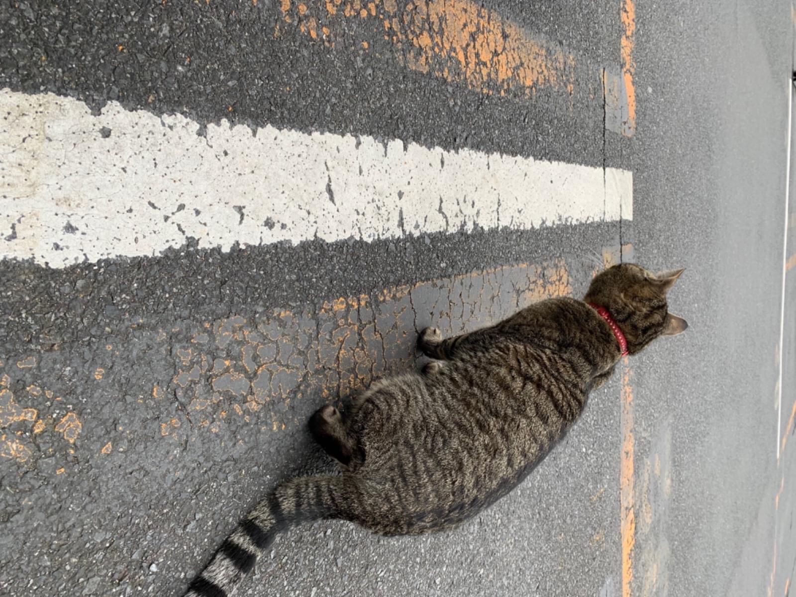赤い首輪をしている猫を目撃しました。