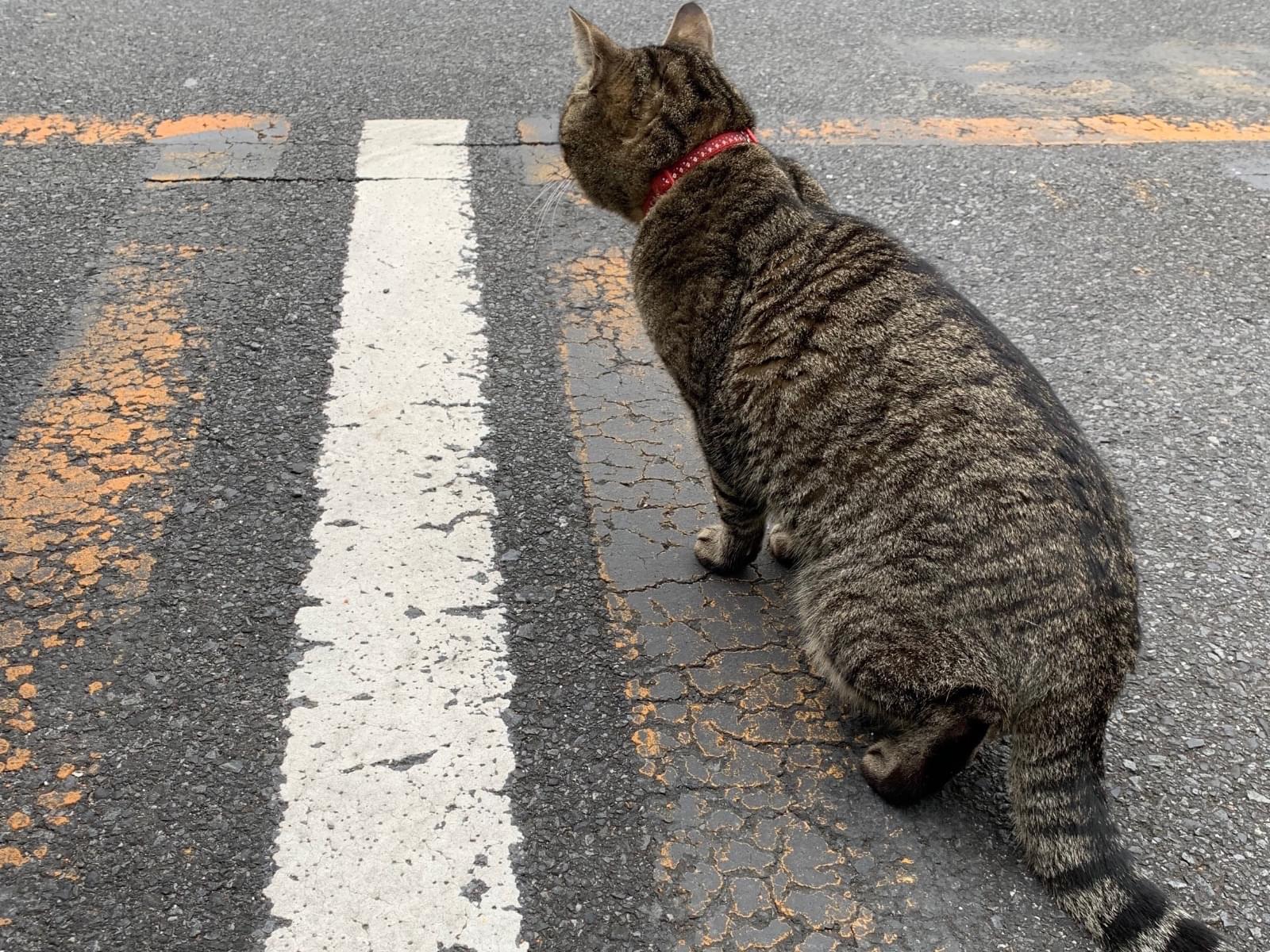 赤い首輪をつけた猫を見かけました。