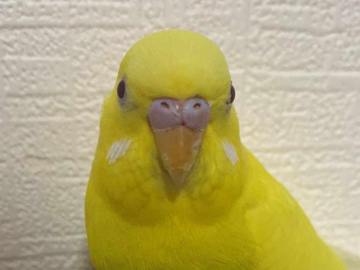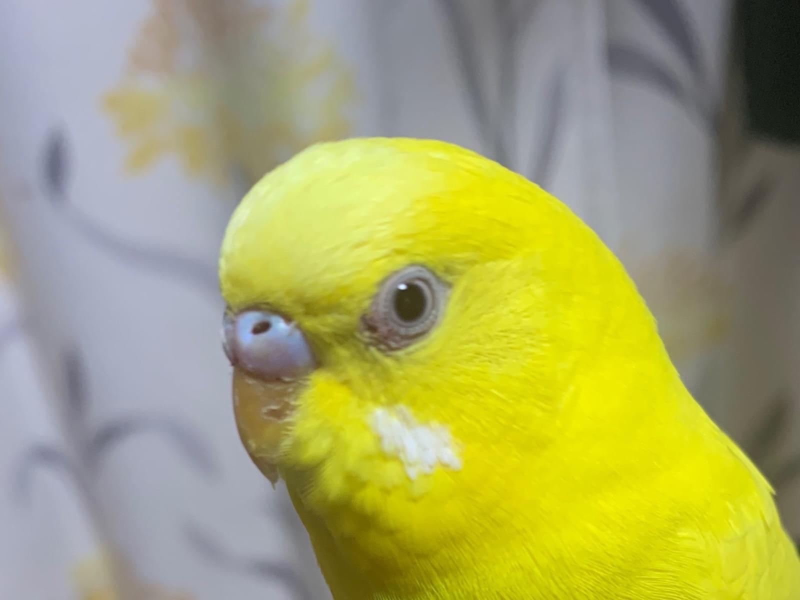 黄色のセキセイインコを保護しています。