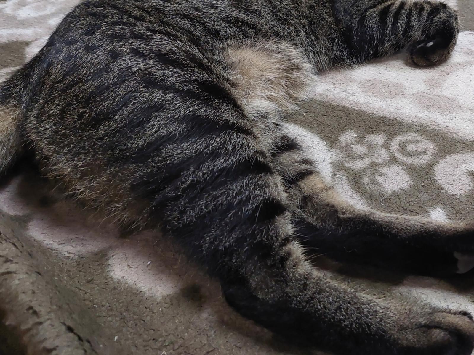 尻尾はまっすぐで長細い。去勢済み。耳カットなし。