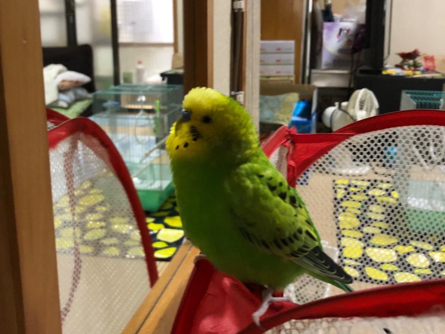 黄色と黄緑色で鼻が青いオスのセキセイインコです。両頬に紫色の毛が有りその下に黒点の毛が3つずつ並んで生えてます。出て行ってしまってから2ヶ月になりますので羽や毛の具合も変わっているかと思います。おしゃべり上手で鏡が大好きです。人の手や肩には乗りますが撫でられたり掴まれたりするのは嫌がります。品川警察署に届け出しています。目撃された方、保護してくださった方、ご一報下さい。どうか宜しくお願い致します。