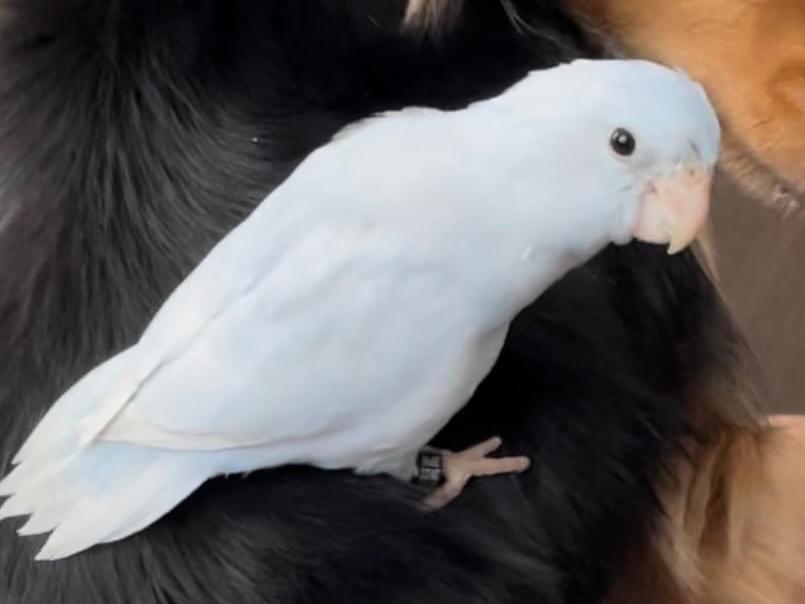 【行動】 肩に止まるのが好きで、人や犬には慣れています。(ですが急に追いかけたりすると逃げてしまう可能性があります。)