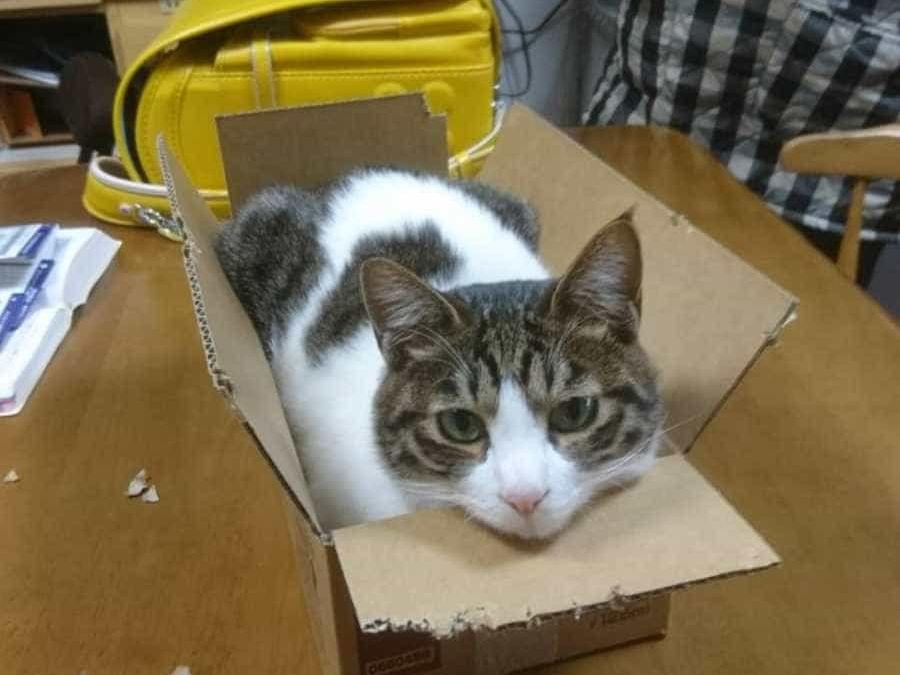 白地にキジトラ模様で、人懐こく、ハスキーな声で鳴きます