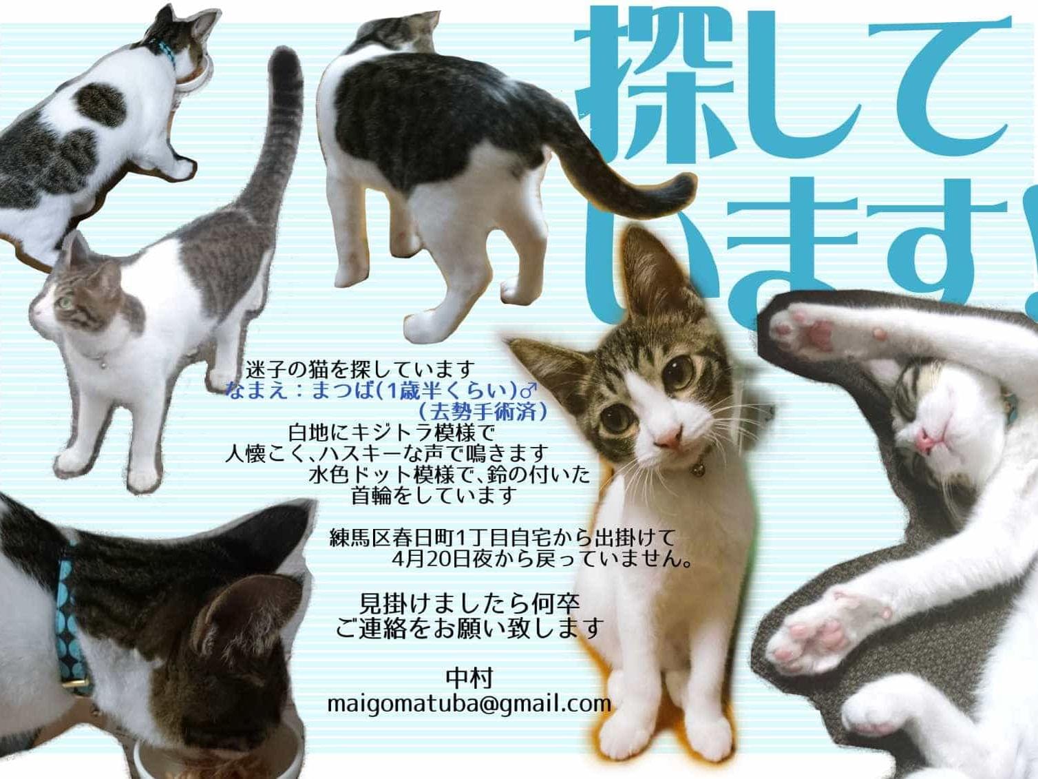 キジトラ♂(1才半くらい・水色の首輪)を探しています/練馬区