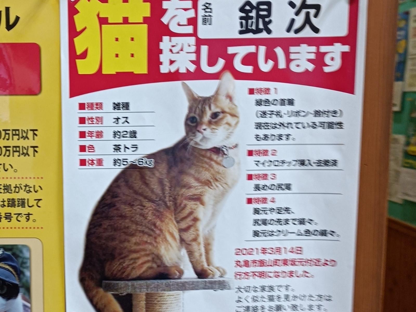 ホーム迷子猫香川県大切な家族を探してい…大切な家族を探しています管理編集するポスター掲載終了最終更新日時:2023/02/11 19:20写真情報用件迷子名前銀次性別オス年齢約2歳場所香川県 丸亀市飯山町発生日時2021年3月14日(日)飼い主銀次ママ説明茶トラ、緑色の首輪、♂、去勢済、マイクロチップ有。朝8時頃、救急車のサイレンに驚いて、自宅より脱走しました。連絡先URL未設定掲示板情報交換のための掲示板です。ユーザーからの情報提供、オーナーからの連絡などにご利用下さいませ。書き込んだ情報は、オーナーのメールに通知されます。まだコメントはありません。トピックを作成する